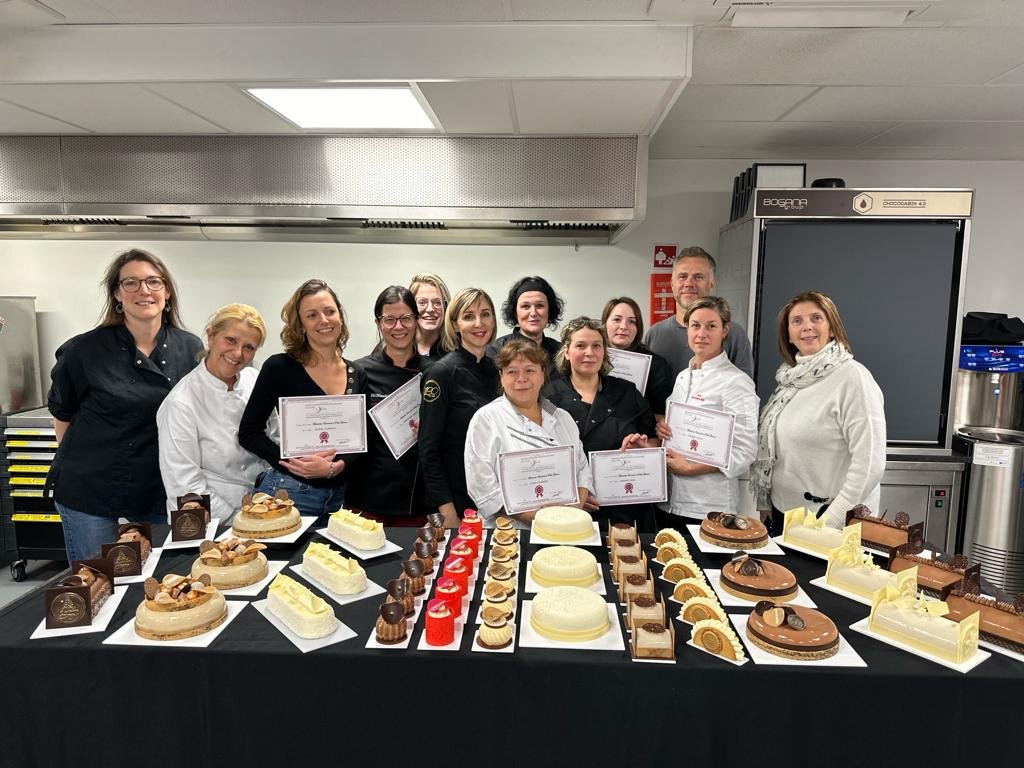 Le but est de réaliser 12 recettes ( soit 80 sous recettes ) et de présenter un buffet final d’une centaine de gâteaux le jeudi en fin d’après-midi avec une remise de certificat de réussite. Il y aura une dégustation et vous repartirez avec quelques réalisations.